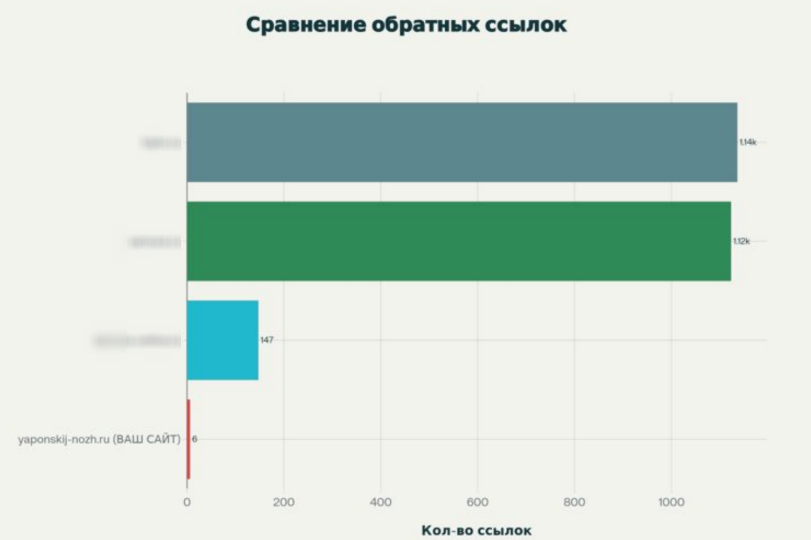 Ситуация со ссылками — самая критичная. На весь сайт ведет всего 6 ссылок, и все они — низкого качества и не передают вес. У конкурентов их сотни и тысячи. Такой разрыв ставит под вопрос саму возможность быстрого выхода в топ.