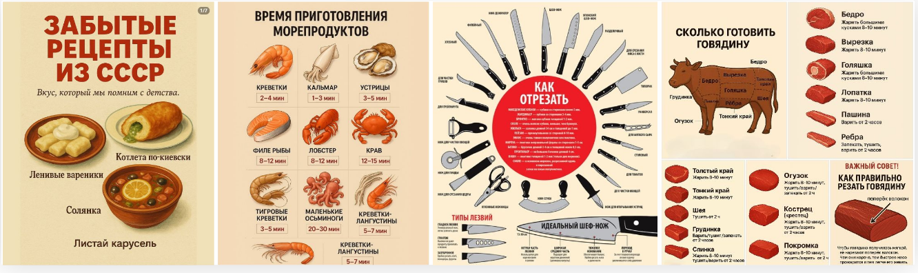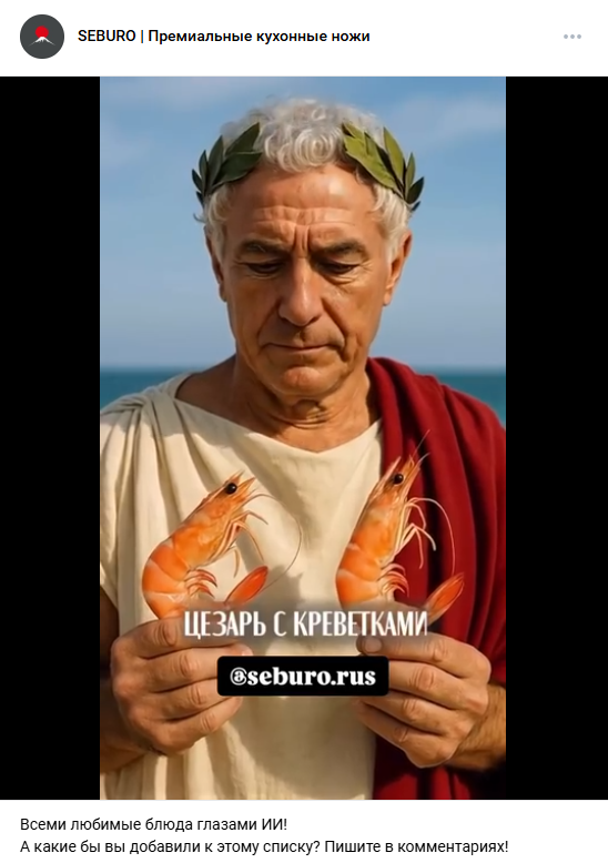 Хочется отметить удачные посты: тематические опросы, подробные видеоролики пошагового рецепта, полезные рецепты маринадов и, конечно, креативный контент с использованием ИИ: