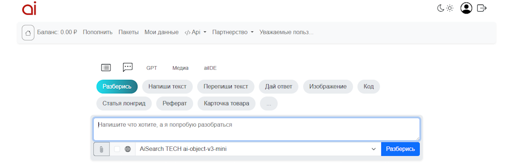 AISearch удобно тем, что предлагает широкий спектр текстовых задач (генерация, рерайт, перевод и др.), поддерживает русский язык, позволяет работать сразу в браузере без установки ПО, а также предлагает гибкую модель оплаты.