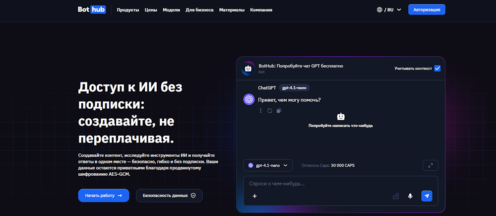 Сервис удобен тем, что работает без иностранных прокси, обеспечивает доступ к самому современному ИИ‑модели без геоограничений. Он универсален — подходит как для бизнес‑задач (создание текстов, отчетов, маркетинговых материалов), так и для творческих или учебных задач — генерация изображений, аудио, работа с файлами. При этом интерфейс достаточно простой и работает в браузере или через приложение.