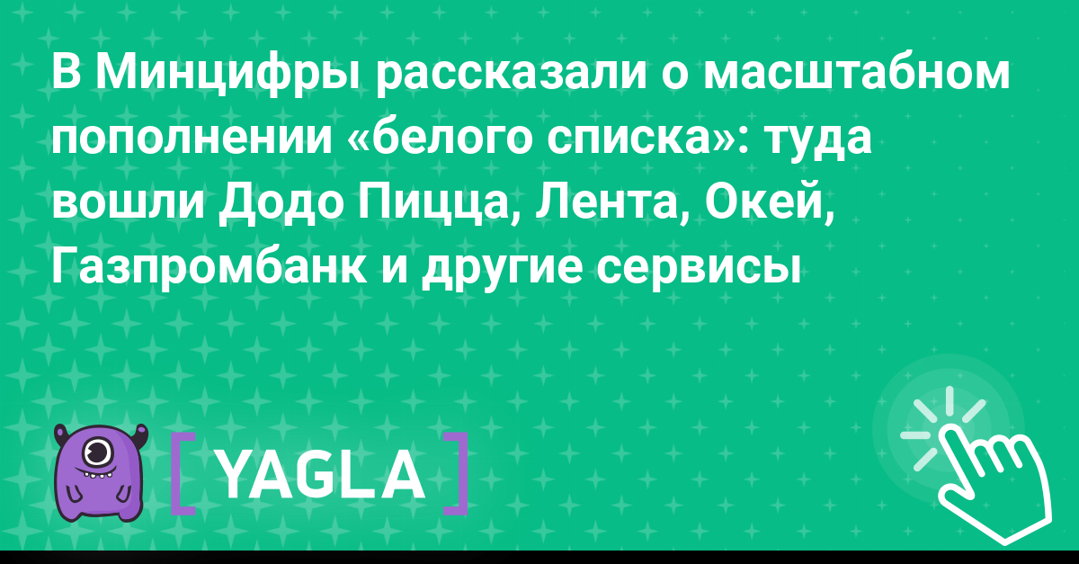 В Минцифры рассказали о масштабном пополнении «белого списка»: туда вошли Додо Пицца, Лента, Окей, Газпромбанк и другие сервисы