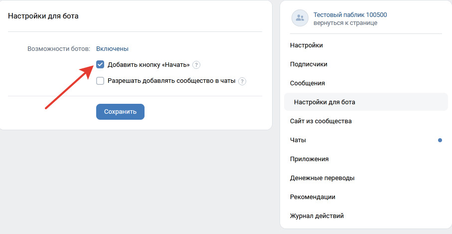Мало просто настроить технику. Важно, чтобы общение было комфортным для пользователя. В настройках сообщений группы не забудьте активировать кнопку «Начать». Именно с нее пользователи начинают диалог с ботом.
