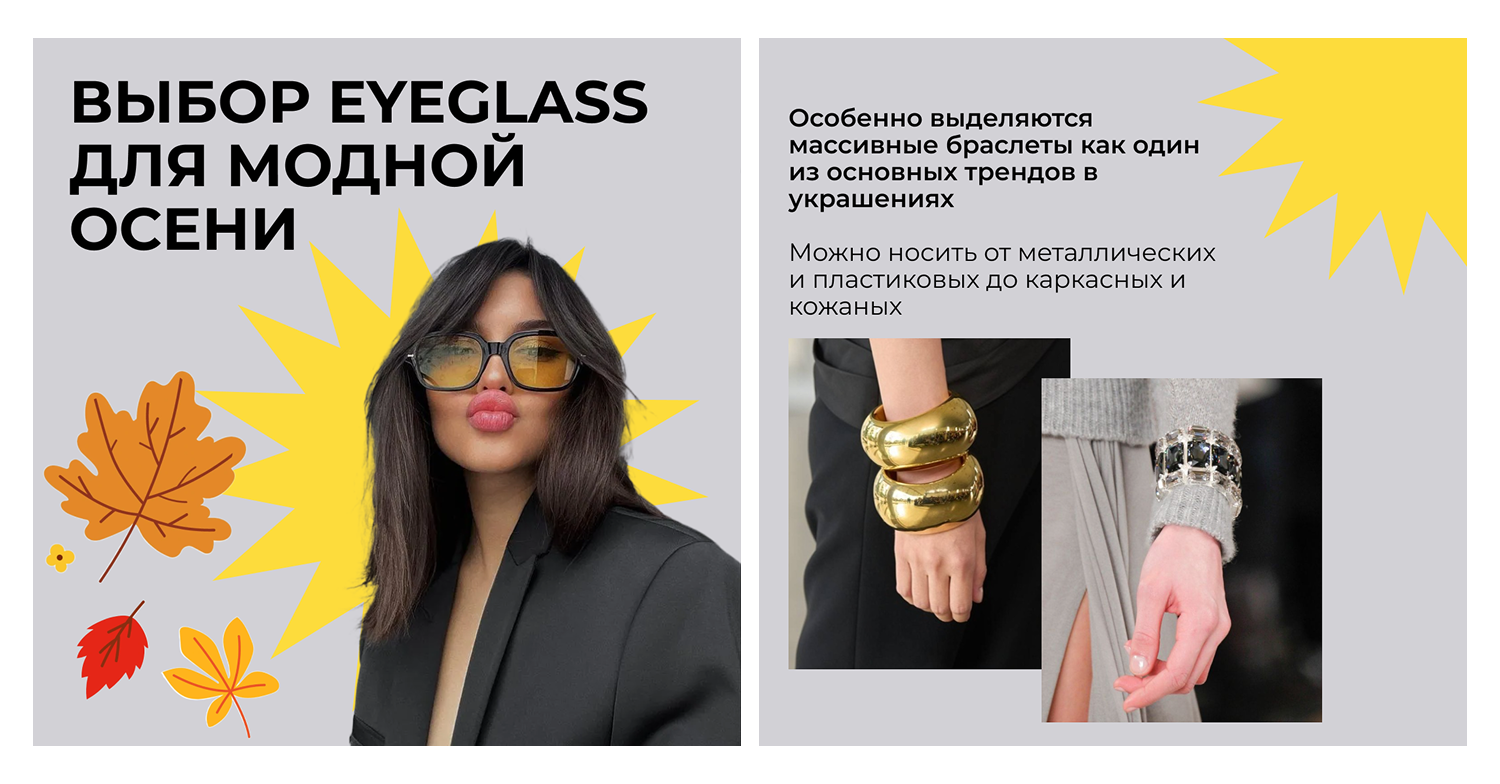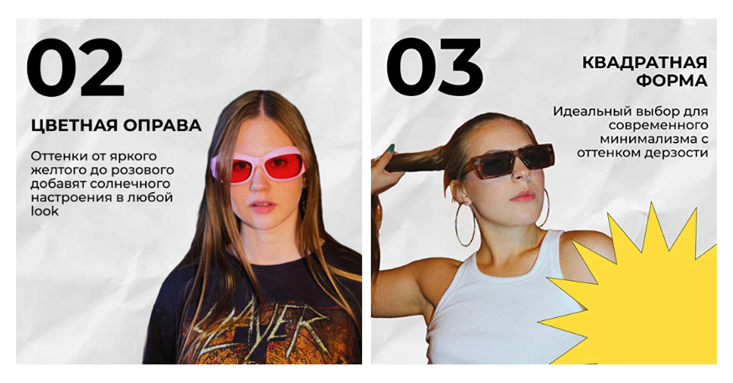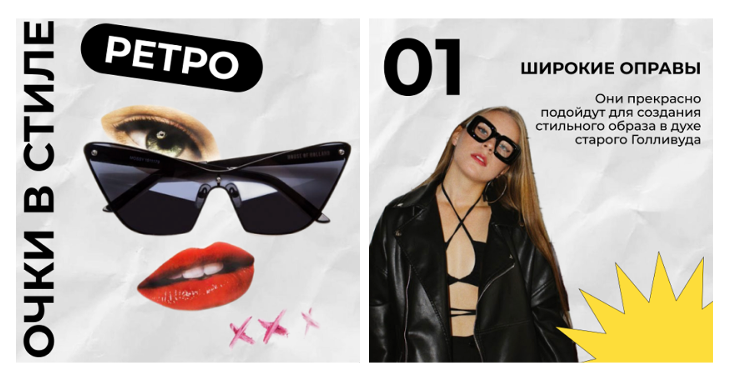 1. Тематические подборки. Вместо банальных анонсов новинок мы создавали вдохновляющие подборки аксессуаров для конкретных стилей. Например, в одном из постов мы показали, как с помощью наших очков создать безупречный ретро-образ.