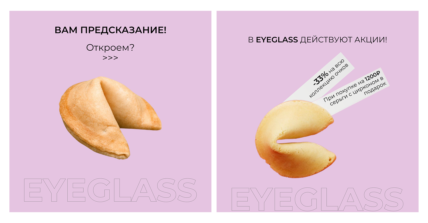 2. Креативные акции. Как нестандартно подать спецпредложение? Мы использовали механику интригующих печенек с предсказаниями. Элемент загадки и игры возвращает в детство, активируя любопытство и желание поучаствовать.