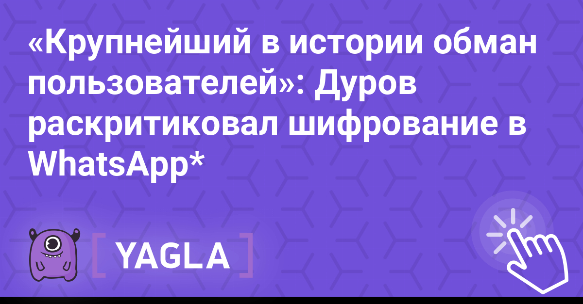 «Крупнейший в истории обман пользователей»: Дуров раскритиковал шифрование в WhatsApp*