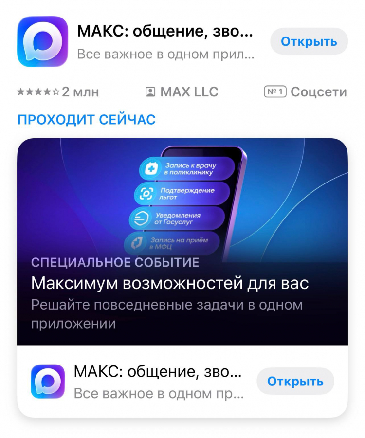Ранее стало известно, что на начало апреля в MAX зарегистрировались 110 миллионов человек, а ежедневная аудитория мессенджера превысила 80 миллионов пользователей.