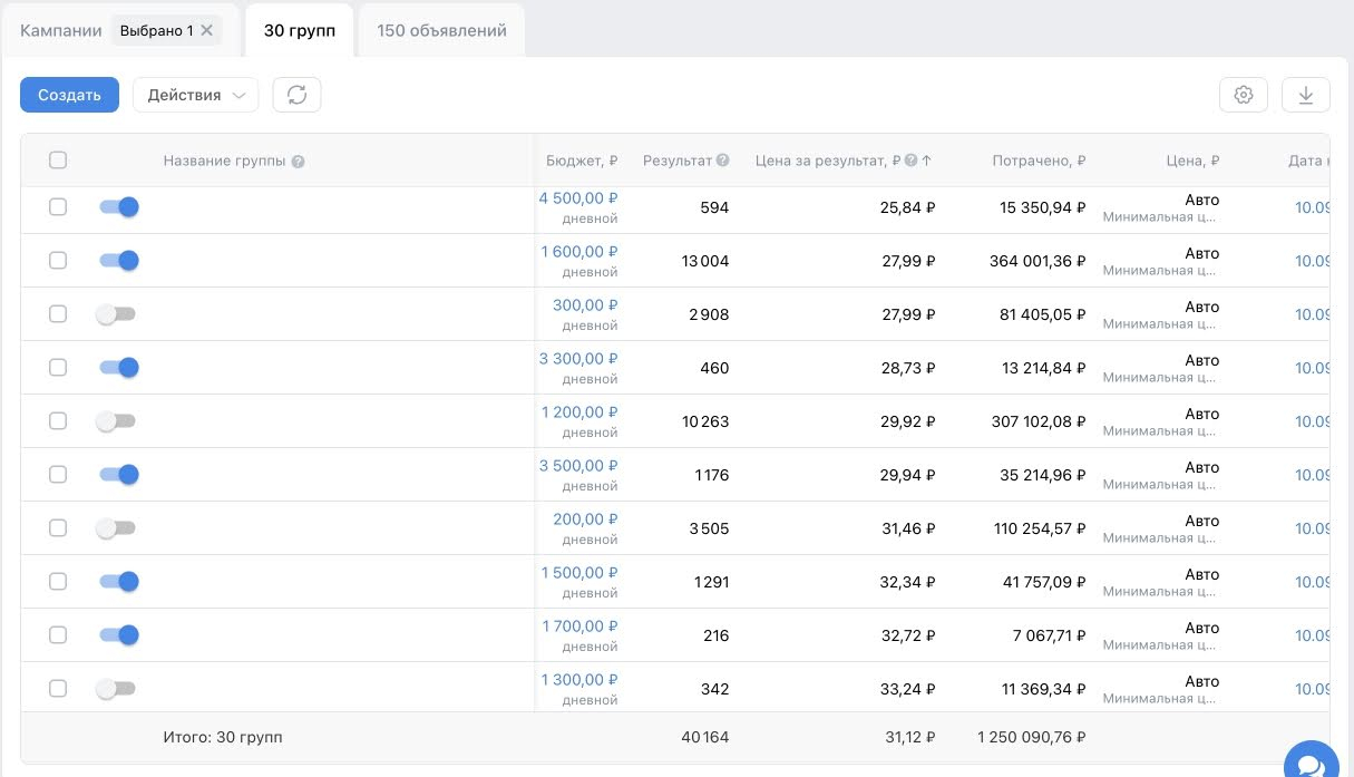 В тестировании наших стратегий участвовало более 200 аудиторий: мы брали и широкие, и узкие сегменты.