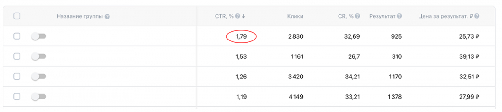 Нам удавалось в течение долгого времени удерживать показатель CTR выше 1%. Иногда мы видим, что достигался показатель 1,8%. Это отличный результат, учитывая коммертизацию проекта и конкурентность.
